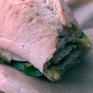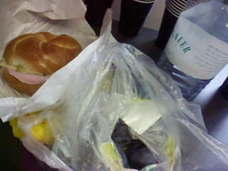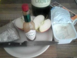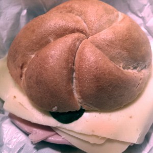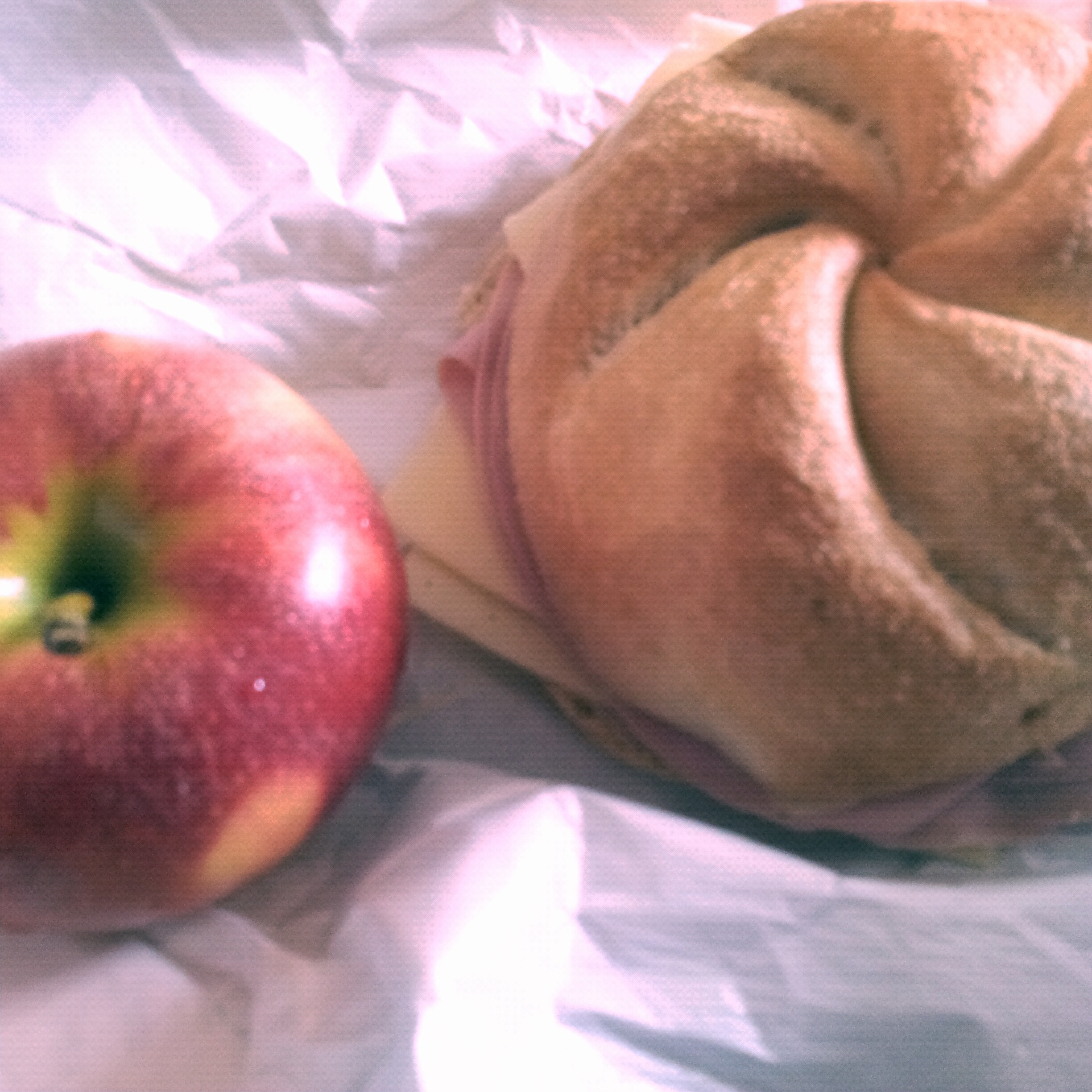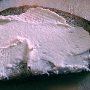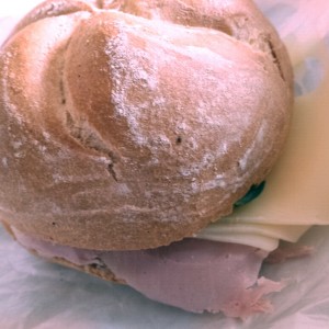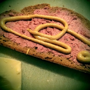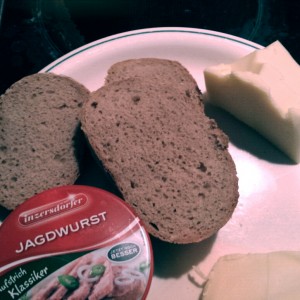 1 Semmel mit Käse von der Leber und Ketchup dazu!