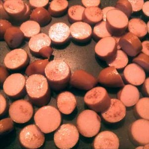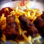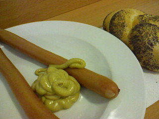 1 heiße Extrawurst mit einem Häufchen vorverdauter Essiggurkerl
