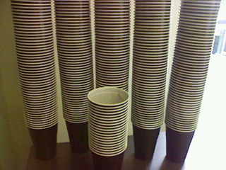 Und das Beweisfoto mit der geilsten Kaffeebechersammlung der Welt – mit Türmen zu je fünfzig und einem Babyturm: